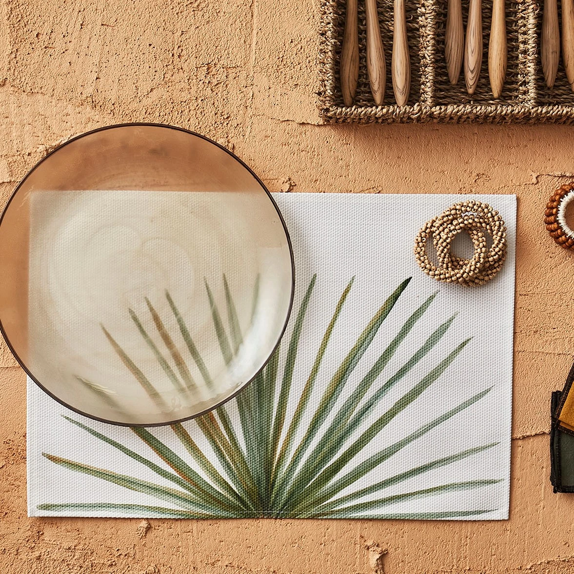 Venez découvrir notre Set table palmier vert 45x30cm en vinyl et polyester de la marque Côté Table à découvrir sur Fabrique de Styles.