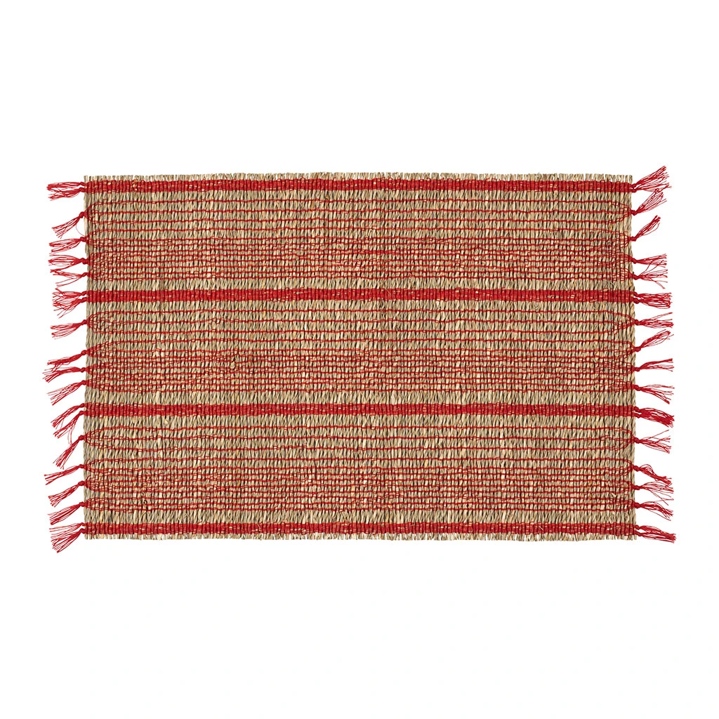 Venez découvrir notre set table damier naturel+rouge 45x30cm jonc mer de la marque Comptoir de Famille à découvrir sur Fabrique de Styles