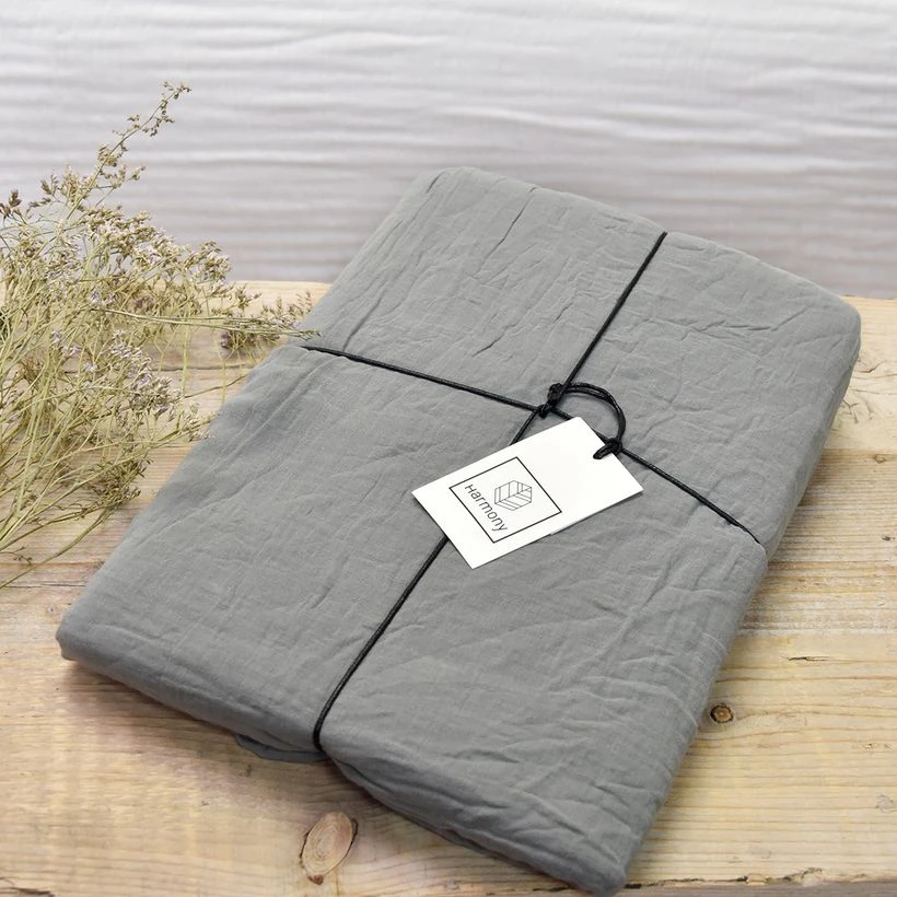 Venez découvrir notre Drap housse dili brouillard 140x200cm en voile de coton lavé de la marque Harmony à découvrir sur Fabrique de Styles