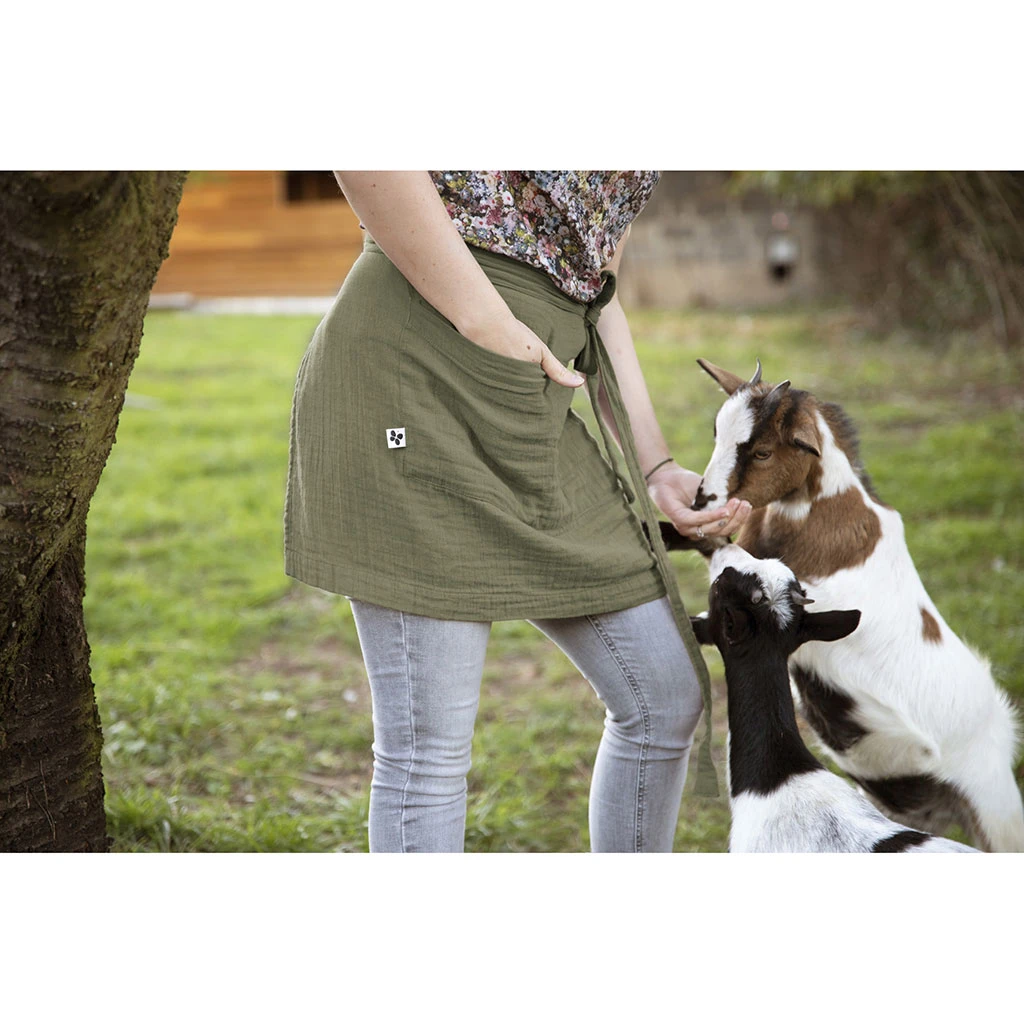 Venez découvrir notre Tablier gaïa en gaze de coton 45x80cm romarin de la marque L’effet papillon à découvrir sur Fabrique de Styles.