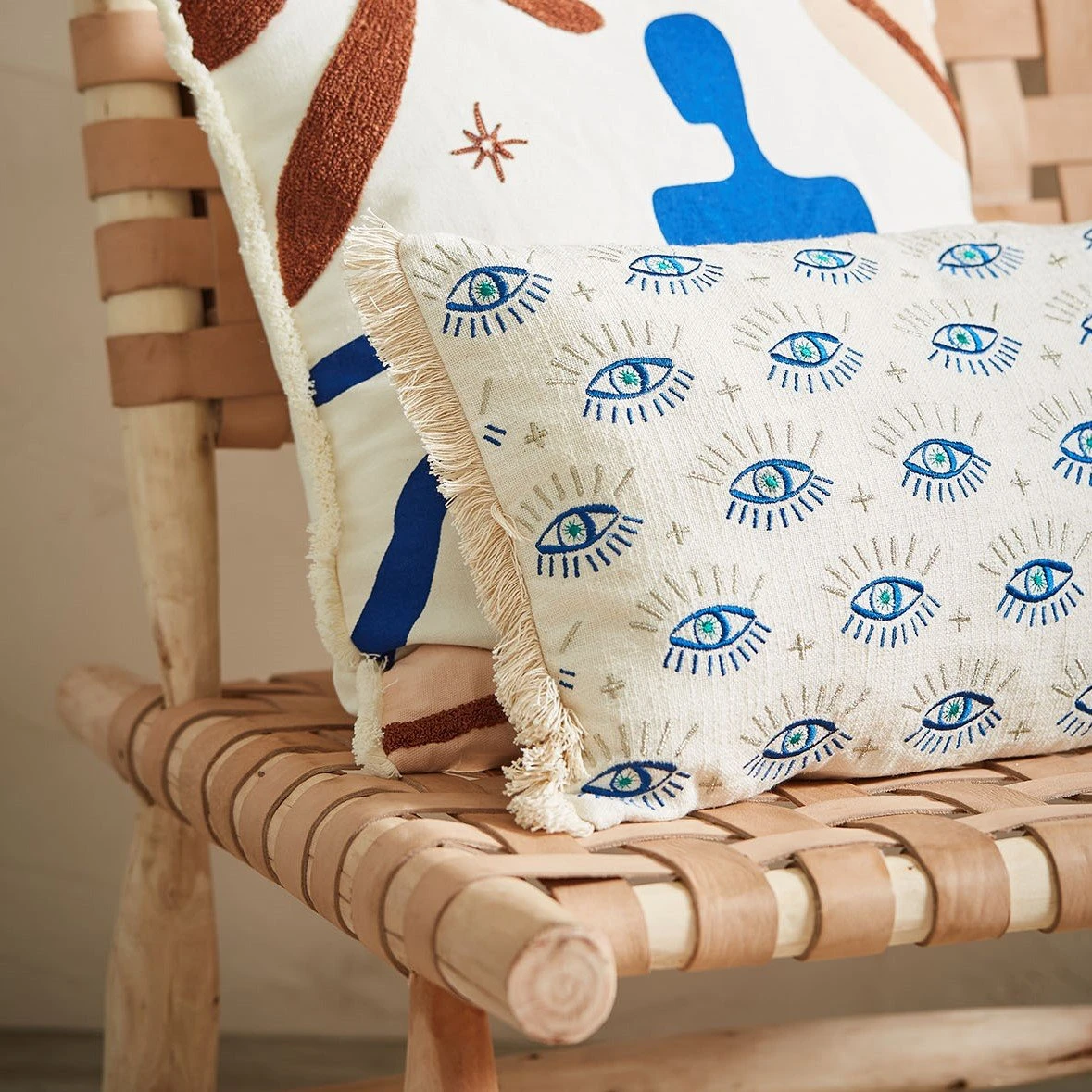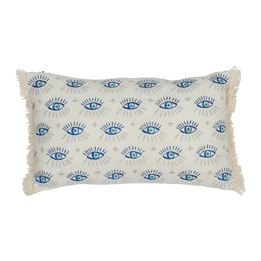Venez découvrir notre Housse de coussin visionnary creme oeil indigo 50x30cm en coton de la marque SEMA Design à découvrir sur Fabrique de Styles.