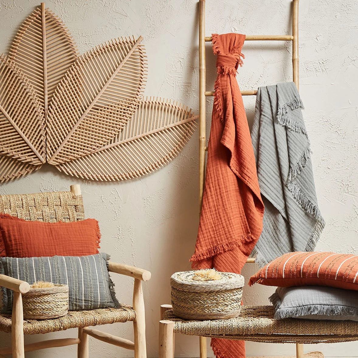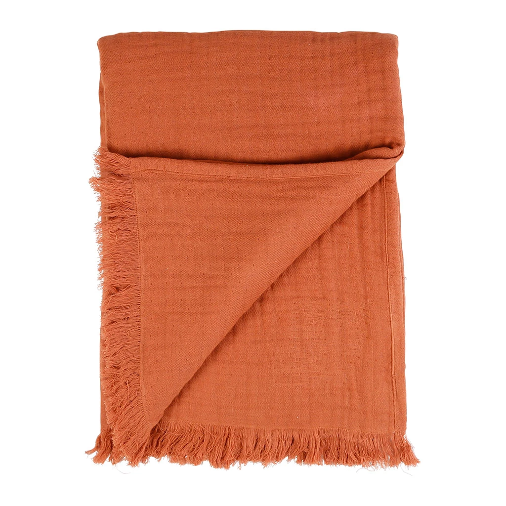 Venez découvrir notre Plaid earth notes terracotta 170x130cm gaze de coton de la marque SEMA Design à découvrir sur Fabrique de Styles.