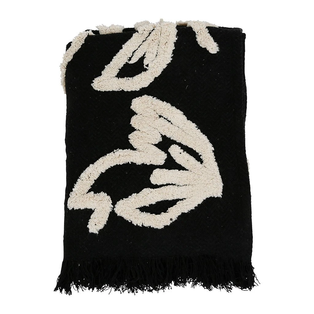 Venez découvrir dans Textiles le Plaid Tufte Solor Noir et blanc 170X130cm tendance Boheme